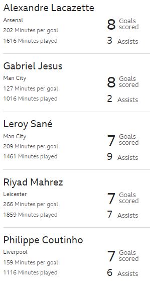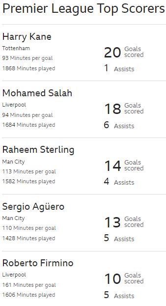 2017 African footballer of the year, Mohammed Salah and Tottenham forward Harry Kane are the top scorers in the English Premier League as they set the pace for others to follow.