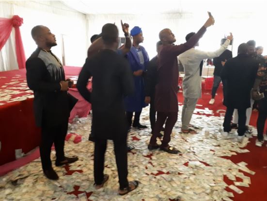 Guests and friends who attended the party which was held at Cubana Lounge in Owerri, the state capital, sprayed huge cash in the course of the celebration as seen in the pictures.
